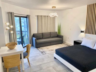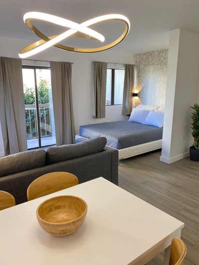 Newly renovated studio (480 sq ft / 45 m²) in The Enclave Hotel and Suites, 1 min from International Drive. Free on-site parking.
